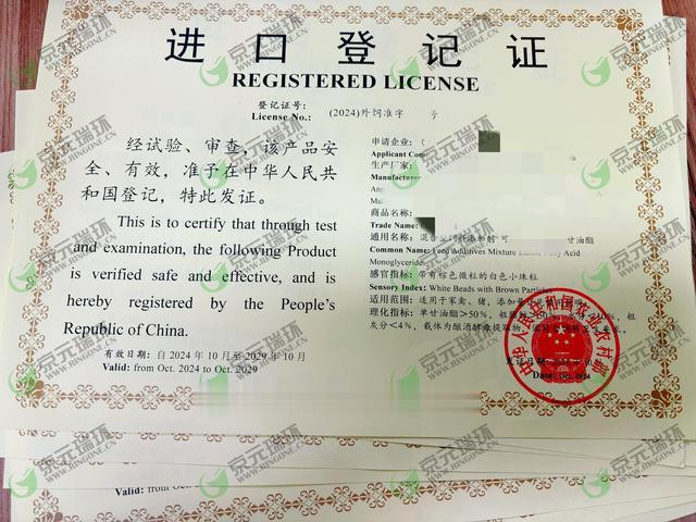 1. 农业农村部《进口饲料登记证》(外饲准字证)